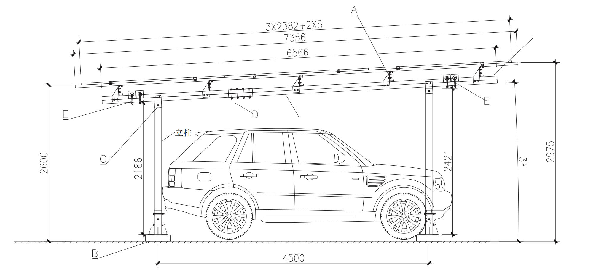 It supports customized span, parking space size and height, perfectly matching commercial parks, factories and public parking lots.